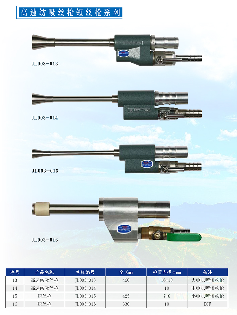 主營各種系列吸絲槍和各種規(guī)格快速插座、升絲拉桿為主。吸絲槍主要包括高速紡FDY、 POY、短絲槍、工業(yè)絲槍,包括紡DTY、加彈機(jī)系列。來圖來樣生產(chǎn)。